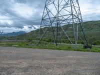 A gloomy day in Colorado with a grey sky and a landscape dominated by a power plant. Construction work is seen on a gravel street, surrounded by nature. The dirt and sand streets blend in with the overall gloomy atmosphere.