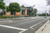 Gloomy day in Los Angeles, California. A deserted street intersection in the heart of the business district. Modern architecture of office buildings stands tall against the grey sky. Urban design at its finest.