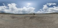 A gloomy day on the rural coastline of Utah, with a grey sky overhead and an open space leading to the ocean. The dirt and gravel surface of the road creates a rustic atmosphere.