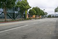 This is an image of a gloomy day in Los Angeles, California, USA. The photo captures the modern architecture of the city, with a low-rise residential area in the foreground and tall office buildings in the background. The grey sky and gloomy weather add to the urban atmosphere of the business district. The asphalt road surfaces and lanes provide a thoroughfare for urban transport. This photo represents the urban design and infrastructure of Los Angeles, showcasing the city life and business activities that take place in this bustling metropolis.