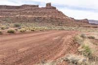 A gloomy day in Utah's desert landscape. The White Canyon Access Road winds through the red rock formations and sandy terrain. The grey sky adds to the overall gloominess. A perfect off-road track for nature enthusiasts.