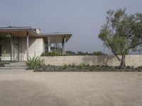 A gloomy morning in a suburban area of Los Angeles, California. Modern residential houses with concrete and gravel surfaces blend into the grey sky. Vineyards and rural roads add to the gloomy atmosphere.