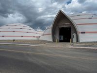 A gloomy day in Utah's residential suburbs. The grey sky hangs over the asphalt roads and storage units. Suburban architecture blends with the cloud-covered landscape. An atmospheric view of a suburban road in the USA.