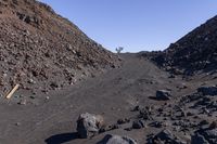 This stock photo captures the picturesque scenery of a gravel mountain in California, USA. The mountain is surrounded by rocks, trees, and an open space. The image showcases the natural beauty of the desert landscape, with its rugged terrain and clear blue sky. The mountain's surface is composed of gravel and bedrock, creating a unique geological formation. In the distance, a mountain range can be seen, adding depth to the composition. This image is perfect for nature-related projects, off-road tracks, or any content related to the California desert region.