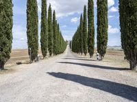 Gravel Road Lined with Cypress Trees in Tuscany, Italy