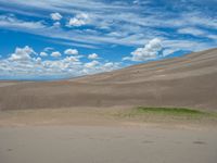 Vast open space at Great Sand Dunes National Park in Colorado, USA. Daytime desert landscape with monumental sand dunes and clear skies. Nature's masterpiece of sand and surface.