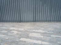 This stock photo features a grey rectangle pattern on an asphalt road surface in Holland. The composite material used in the road construction is visible, giving it a unique texture. The tar and tints and shades create a symmetrical pattern that adds visual interest to the urban landscape. The modern architecture and metal wall of the buildings in the background add to the city life feel of the image. This photo captures the urban design and modernity of Holland, a country known for its innovative urban planning and infrastructure.