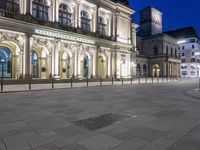 An empty city square in Hamburg, Germany, illuminated by artificial light at night. The modern architecture of buildings and the classic facades create a striking contrast. A beautiful and serene open space in the heart of Europe.