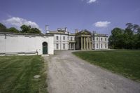 A classic architectural building in Hamilton, Ontario. Clear sky and lush vegetation surrounding the land lot create a picturesque landscape. The building's facade and historic architecture make it a top tourist attraction in the suburban area.