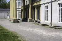 A classic architecture castle in Hamilton, Ontario. Lush green vegetation surrounds the building, creating a picturesque scene. Clear skies highlight the historic beauty of this tourist attraction in a suburban setting.