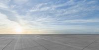 An HDR image capturing the beauty of the open space in Texas, USA. The sunny sky with visible contrails creates an emotional atmosphere. The concrete surface reflects the vibrant dawn light in Nevada and Utah.