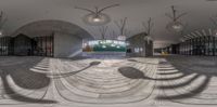 A modern city skyline in Hong Kong with high-rise office buildings and bustling streets. The reflection in the mirror captures the vibrant city life and urban design. Straight down the road, with clear skies and hard shadows, the city offers open spaces and a high position view.