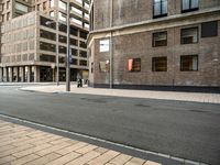An empty street in the heart of Holland, lined with modern architecture and vibrant city life. The brick walls and flooring create an urban design aesthetic. This bustling European thoroughfare is in the Netherlands' art district.