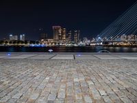 This image captures the vibrant cityscape of Holland, Netherlands. The modern architecture and high-rise buildings are illuminated by the artificial lights of the city, creating a dazzling display against the dark night sky. The cobblestone streets and waterfront add charm to the urban design, while the trees and lakes provide a natural element. In the foreground, a pier and jetty extend into the water, allowing for leisurely walks along the coast. This photo represents the lively city life and the beautiful fusion of modernity and traditional charm in Holland.