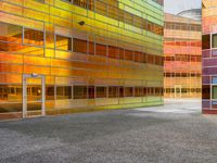 A modern high-rise building in the business district of Holland, Netherlands. The multicolored facade stands out against the clear sky. The open space in front creates a welcoming atmosphere for residents and office workers.