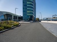 A modern skyscraper in Holland, Netherlands. The high-rise building stands tall in the city amidst urban architecture. Cars travel on the road below, surrounded by urban design and business districts.