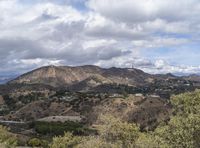 The iconic Hollywood Sign perched atop a mountain in Los Angeles, California. A breathtaking aerial view reveals the bustling urban city sprawling below. Modern architecture blends with natural mountain landscapes, offering an elevated and picturesque overlook of city life.