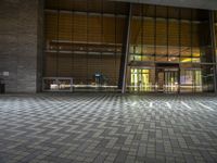 An empty floor in a modern office building in Hong Kong's bustling business district. The dark city night outside contrasts with the artificial light inside. A glimpse of urban design and modern architecture.