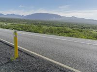 This image showcases a straight road surrounded by stunning Icelandic landscape. The asphalt road cuts through the picturesque mountains and green grass fields. The clear blue sky is filled with fluffy clouds, and contrails from passing planes can be seen in the distance. The road surface is smooth and well-maintained, perfect for any mode of transport. This photo captures the essence of the untouched beauty of Iceland, an island in Europe known for its breathtaking scenery.