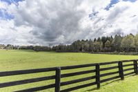 Idyllic Pasture with Fence, Forest, and Evergreen Trees