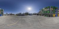 there is a spherical picture of an industrial area in canada, taken with a fisheye lens