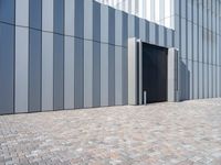 A modern building in Bremen, Germany with a striking grey facade and an inviting open door. The brick flooring adds a touch of industrial charm. This property showcases the best of modern architecture in Europe.