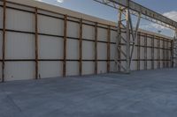 This is an image of a modern industrial building in Toronto, Ontario, Canada. The building's architecture features a combination of concrete, wood, and steel materials. The clear sky above highlights the clean lines and open spaces of the structure. The large garage doors and industrial warehouse provide ample space for storage and manufacturing. This photo represents the industrial nature of Toronto's real estate market and the importance of construction and manufacturing in the city.