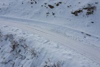 A picturesque mountain landscape in Italy. The elevated road curves through the glacial slopes, surrounded by dense vegetation. Snow covers the surface, creating a stunning contrast against the clear sky.