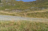 A rugged mountain road in Italy with a gravel surface. The road winds through a picturesque landscape, surrounded by lush vegetation. The open spaces and sloping terrain make it a perfect entry point to explore the beauty of Europe.