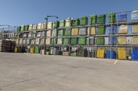 Sunny day in Jonesborough, Tennessee. Clear sky highlights the urban design with composite material facades. Streets lined with buildings and street lights. Industrial storage and factories dot the landscape.