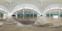 An empty room in Kingsport, Tennessee with floor-to-ceiling windows. The straight road outside leads to a parking garage. The concrete surface and metal architecture give the room an industrial feel.