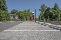 This stock photo features an urban landscape in Toronto, Ontario, Canada. The image showcases a well-designed road with a smooth asphalt surface leading to a spacious parking lot. Surrounding the road, there is a beautiful residential area with neatly lined trees and a walkway. The clear sky overhead enhances the overall scenic view. This photo represents the vibrant and modern city of Toronto, an ideal place for settling with its well-planned infrastructure and public spaces.
