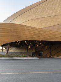 A modern architectural masterpiece in the heart of Las Vegas. The sleek, rectangular building casts long shadows in the early morning light. The urban landscape is filled with asphalt roads and composite material facades.