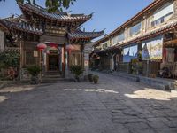 A picturesque view of the old town of Lijiang, China. Ancient history comes to life in this historic village. Cobblestone roads lined with traditional Chinese buildings and shops. A popular tourist attraction in Asia.