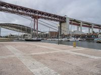 Lisbon Harbor: Boats Docked Under Concrete Bridge