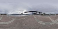 a fish eye view of a bridge and some clouds in the background on a cloudy day