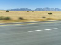 A long road cutting through the rural landscape of South Africa. Majestic mountains rise in the distance against a clear sky. The road surface leads to open fields and a peaceful lake.