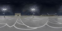 A view of Los Angeles International Airport at night, with illuminated runways and parking lots. The cityscape in the background creates a stunning afterglow. The airport is surrounded by markings, light poles, and urban design.