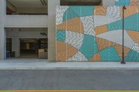 A vibrant mural adorns the facade of a parking garage in Los Angeles. It adds a splash of color to the modern architecture and blue sky backdrop. The artwork captures the essence of the city's urban design and thriving art district.