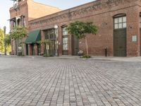 In the heart of Los Angeles, California, a stunning blend of classic and modern architecture. The open plaza and cobblestone surface create a charming urban oasis. A clear sky sets the scene for a beautiful dawn. Explore the city's vibrant hotel and restaurant scene.