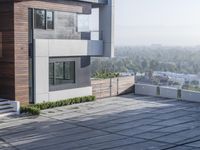 This is an image of a modern residential villa in Los Angeles, California, USA. The villa stands out with its unique and sleek architecture, featuring a high floor and an elevated roof. The concrete surface of the building reflects the clear sky above. Situated in a residential area, the villa provides a luxurious and stylish living experience. The open space in front of the villa adds to the appeal, complementing the urban design. This photo represents the epitome of modern architecture and real estate in Los Angeles.