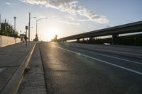 A view of the sun shining in front of a freeway at dusk in Los Angeles, California. The highway is filled with traffic, highlighting the urban life of the city. Clear skies add to the sunny atmosphere.