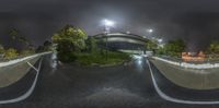 Aerial view of a busy street in Los Angeles at night. Cars blur in motion as they navigate the city's curved roads. Artificial lights illuminate the modern architecture. Traffic lights and street lights create a vibrant urban atmosphere.