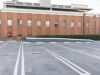 A beautiful dawn in Los Angeles, California, showcasing the modern architecture of the city. The urban design incorporates a combination of brick, wood, and composite materials. Concrete streets lead to a spacious parking garage surrounded by public spaces.