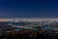 a view of the city lights of downtown at night taken from an aerial viewpoint in la