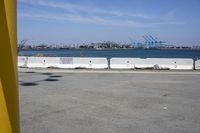 This is an image of the coastal city of Los Angeles, California, USA. The architecture of the buildings can be seen against a clear sky. The road surface is made of asphalt and concrete, leading to the beach and the ocean. In the foreground, there is a factory with a rooftop and an industrial profile. The horizon stretches out to Long Beach, with a pier and a harbor. The water surface is calm, reflecting the clear sky. This photo captures the essence of a beautiful day in Los Angeles, perfect for a beach vacation.