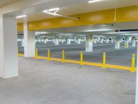 This image captures the night scene of a parking deck in Los Angeles, USA. The concrete surface is illuminated by artificial light, creating a dark and contrasting atmosphere. The parking garage and parking lot are visible in the photo, representing the bustling city life. This picture represents a typical urban night in Los Angeles.