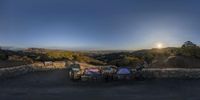 An aerial view of Los Angeles at dusk, showcasing its iconic skyline and modern architecture. The city is nestled amidst mountains and open spaces, with the ocean and coastal areas in the distance. A serene park offers a clear sky view of the bustling metropolis.