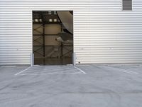 A stunning view of modern architecture in Los Angeles, California, USA. The photo captures a cityscape at the break of dawn, showcasing a road lined with parking lots, warehouses, and factories. The sleek and contemporary design of the buildings features concrete surfaces, metal walls, and loading docks. The photo showcases the urban profile of the city, highlighting the juxtaposition of the modern architecture against the city's skyline. This image is a representation of the vibrant and industrious atmosphere in Los Angeles.