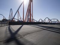 A sunny day in Los Angeles, California. The iconic suspension bridge reflects in the calm water of the park. Open space, nature, and unique architecture make it a popular tourist attraction. Parking lots and recreational activities available.